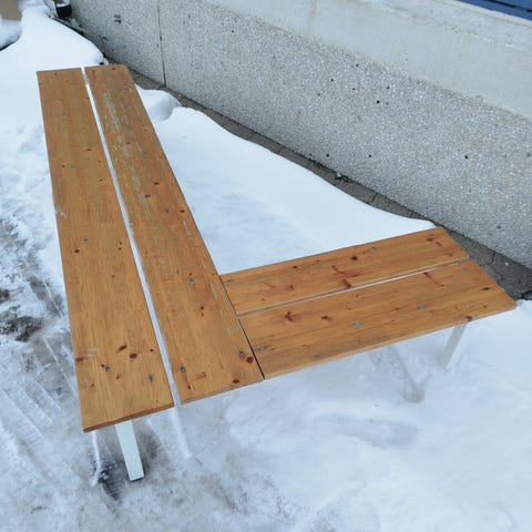 Væghængt omklædningsbænk hårdt træ. B:130 cm x H:42 cm. D: 50 cm. Vægbeslag udført i galvaniseret stål. Dimension på vægbeslag: 50x30 mm. Forbrug pr/bænk: 2 stk. vægbeslag, 2 stk. skrå skåret træ, 1 stk. plan træ, 6 stk. små maskinskruer, 4 stk. store maskinskruer. Se evt. lignende artikel her: https://kingogenbrug.biz/vare/1stk-balancebom-433cm-massiv-lakeret-trae/ https://partisalg.dk/produkt/spejl-silver-clear-876-x-716-mm-pris-kr-29-stk/ https://kingogenbrug.biz/vare/vaeghaengt-omklaednings-knageraekke/ https://kingogenbrug.biz/vare/vaeghaengt-omklaedningsbaenk-lakeret-trae/ https://kingogenbrug.biz/vare/vaeghaengt-omklaednings-hattehylde/