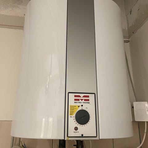 Metro elvandvarmer 15L Hurtigvirkende elvandvarmer specielt beregnet til opvarmning af brugsvand til køkken, håndvask og mindre brusebade. Trinløs temeraturstyring fra 5-65° Beholderne kan have mindre skrammer fra transport og håndtering. Rørføring i bunden af beholder. Se billede for flere detaljer. Producent Metro Therm Mål: 390x300x450mm