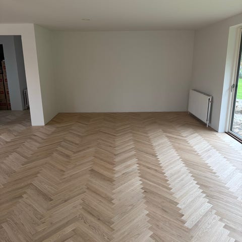 Ege stave til sildebens parket 56x455mm. Stavene er produceret af Fionia Parket, og har ligget på Ulriksholm slot. Stavene kan have limrester på bagsiden. Søm er nænsomt udtaget, så fer og not er intakte, enkelte kan skader forekomme. Gulvet fremstår med en virkelig flot overflade, med meget lidt slid. Sælges pr m², og der går 40 stave på en m² Mål:56x455x19mm. Producent: Fionia Parket
