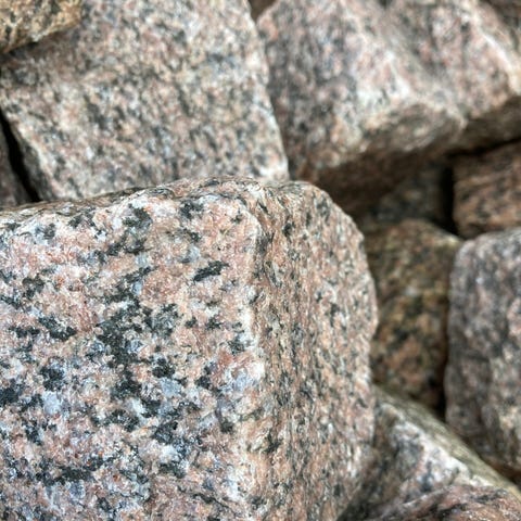 Chaussesten sort med røde tegninger/striber 8-11cm. Parti med sten i sorte og røde farver, som giver et fantastisk farvespil i belægningen. Stenene kan varierer i størrelse, og kan være uregelmæssige. Der går ca. 10 stk. pr løbende meter. Hver sten vejer ca. 2-2,5kg. Sælges pr stk.