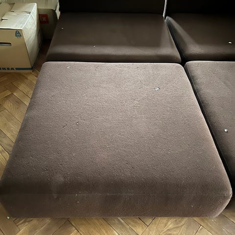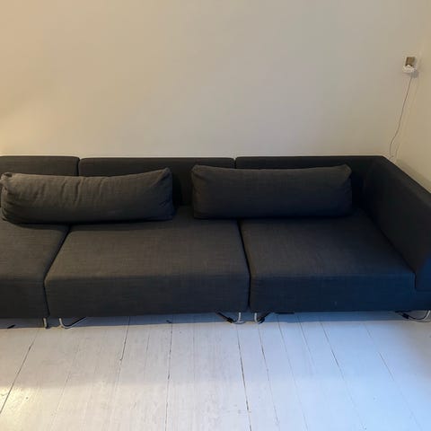 Smuk Bolia sofa. Renset af firma i maj 2025. Som ses på billedet er der lidt farveforskel når ryg puderne flyttes, fra sollys og alm. brug. Men ingen synlige pletter og ikke synlig forskel når puderne er på plads. Hver modul måler 1x1 meter. De læse pynte puder og evt. tæppe følger ikke med, men kan tilkøbes hvis interesse.