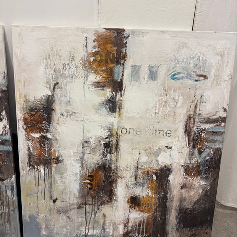 Værkerne er mixed media/akryl på lærred, professionelt indrammet og i flot stand. Serien sælges kun samlet.