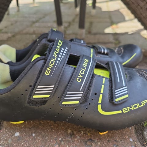 Super lækker kvalitets sko. Brugt, men fremstår rigtig flot. Det er en størrelse 40, men passer ca til en størrelse 39. Leveres med klamper, som passer til stort set alle fitness centre.