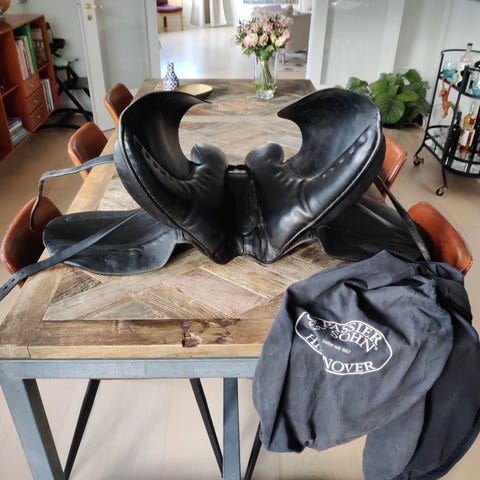 God dressursadel med dybt sæde. 17' Caprilli dressursadel. Dyb og smal model. Passet og plejet og i god stand. Sadlen er af ældre dato, men er passet og ikke brugt i de seneste år.
