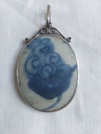 Ovalt porcelænsvedhæng i typisk blå-hvid