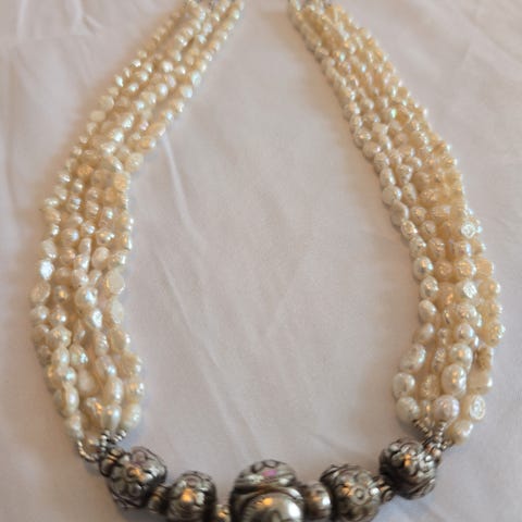 Halskæde med ferskvandsperler og sterlingsølv