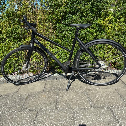 Som ny. Kun kørt hjem fra cykelhandler og har stået opbevaret indendørs. Størrelse L47 cm. 7 gear Shimano. Med kurv og godkendt lås. Kvittering haves.