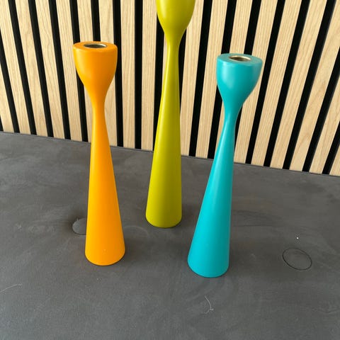Mørkeblå 38 cm, lyselilla 33 cm, lyseblå 28 cm