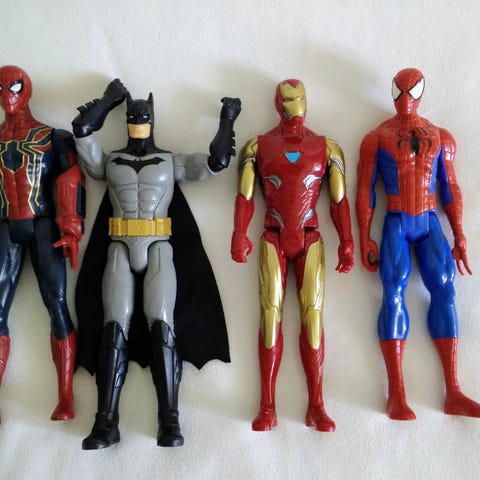 Spider-man & Batman figurer, Medicom, 1 styk spider-man vinyl figur fra 2006 og 1 styk Batman figur. Figurerne er fede med overdimensionerede mål og meget cartoony i udtrykket.