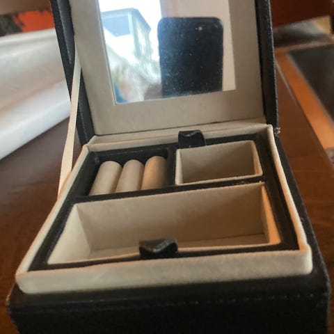 1 - ældre sort smykkeskrin af læder. Nøgle.