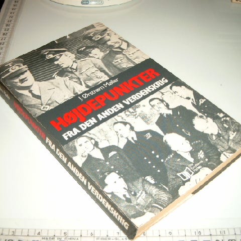 Højdepunkter fra den anden verdenskrig, Af j. Ørstrøm Møller, emne: historie og samfund, Illustreret med fotos og kortskitser. Af j. Ørstrøm Møller. 1985. 192 sider, ill, hft. - Indhold: Optakten ; Den 9. april 1940 - Danmark og Norge erobres ; Frankrigs fald ; Slaget om Storbritannien ; Barbarossa - Angrebet på Rusland ; Pearl Harbor - Singapore ; El Alamein ; Stalingrad ; Kampvognsslaget ved Kursk ; D-dag - Normandiet ; 20. juli-attentatet ; Arnhem ; Modoffensiven i Ardennerne ; Slaget om Berlin ; Krigens forløb i perspektiv