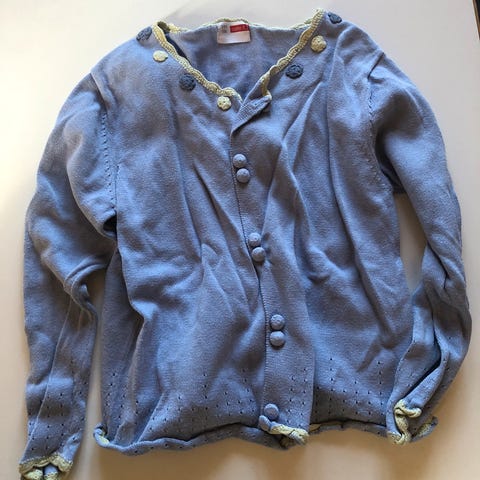 Ny hjemmestrikket cardigan med hue. Strikket i baby garn.