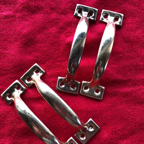Bøjlegreb med hvidt porcelæn, reto /antik, Bøjlegreb i antik messing look med mellemstykke i hvidt porcelæn. nye