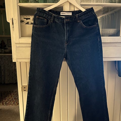 Gode og velholdte blå cowboybukser i str. 34 og af mærket Bershka