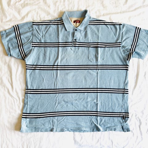 Pånær at mærket er klippet af og lidt misfarvning under knapperne, i fin stand. Måler ca. 60 cm. over skulderne. 100% bomuld.