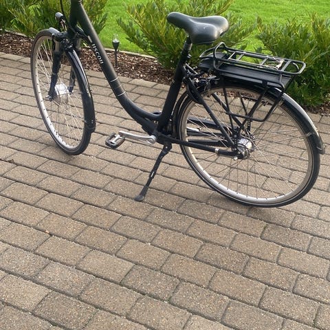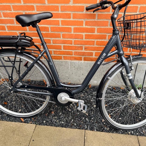 Den har fået monteret nye dæk med lav rullemodstand, cykelkurv og affjedret sadelpind