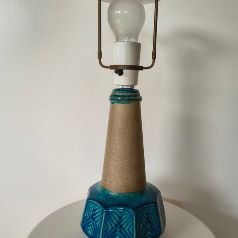 Bordlampe med blå glasur, mærket 138A. Højde 40 cm inkl. fatning. Som ny, ingen afslag.