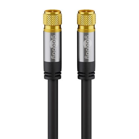 PRIS-MATCH! F-stik antennekabel (lige F-stik) | Sort 4x afskærmet antennekabel af højeste kvalitet, der kan håndtere digitale DVB-T/C/S 4K signaler. Kablet er monteret med lige F-stik.
