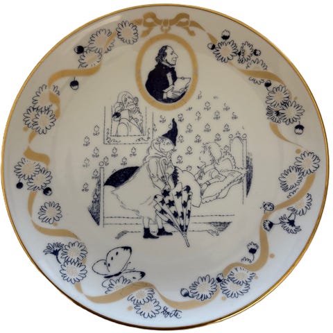 Super flot hvid platte fra Lise Porcelain's serie med H. C. Andersen motiver.