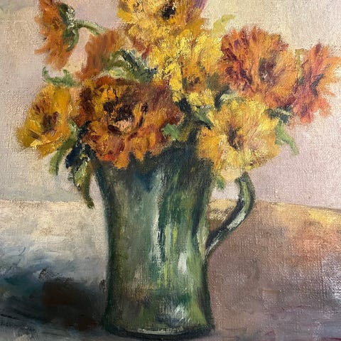 112 gange 72 cm. Af Poul Berg kendt kunstner fra hanherred. Billedet kan evt bringes. Fast pris. Nedsat fra 2500kr