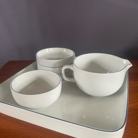 Blå kant fajance Smørbrik, fad, slål, tallerkner mm