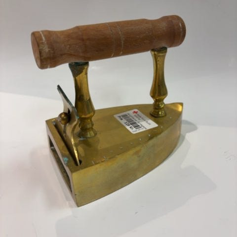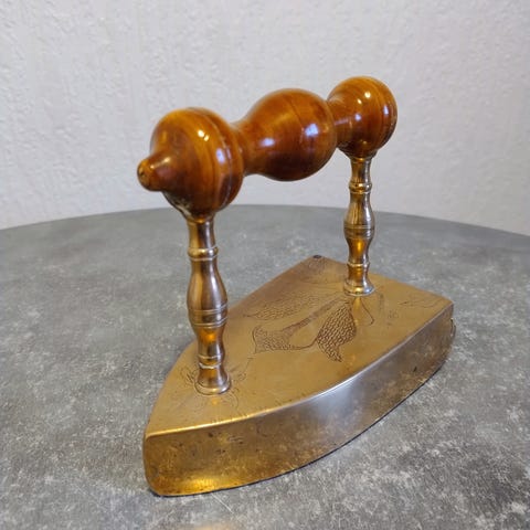 Gammelt messing kulstrygejern m/varmesten
