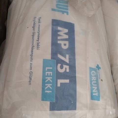 Jeg købte to poser i Bauhaus, men fik kun brugt 1 ved reparation af pudset loft på strø, samt pudsede vægge. Med i købet følger hønsenet som er nødvendigt ved pudsning af lofter.