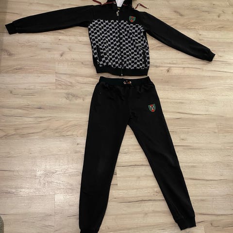 Pige jogging sæt i sort velour med snøre i i siderne fejler intet i pæn stand