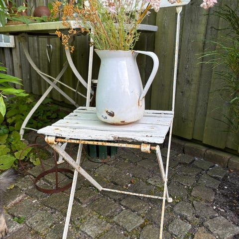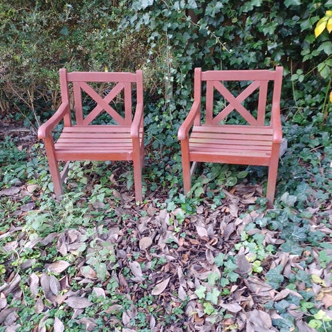 Flotte oprindelige gamle havestole der er lette og lakerede og kan klappes sammen. De fejlet ingenting men er blevet lidt leddeløse så de skal fixes lidt.