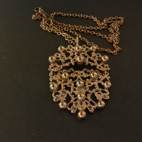 Stort vintage bronze vedhæng i halskæde fra finske Pentti Sarpaneva for kalevala koru fra 1960'erne. I sat sten af tigerøje.