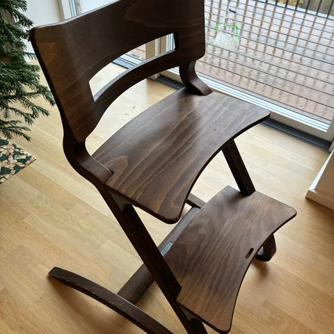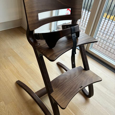 Velholdt højstol i fantastisk kvalitet i valnødtræ fra Leander.