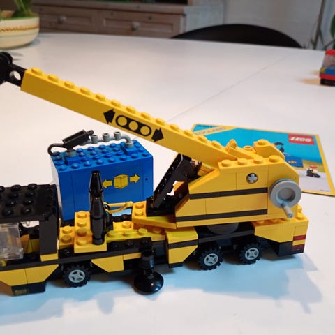 Et godt sæt med kranvogn mm. til mange timers leg. Der mangler ikke noget bortset fra æsken.