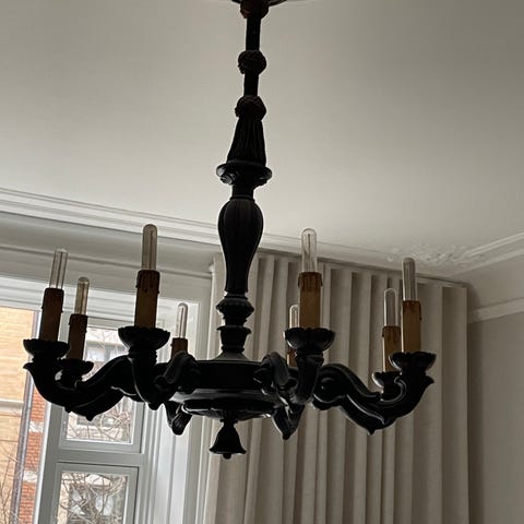 Flot 8-armet lysekrone i mørkt træ sælgers.
