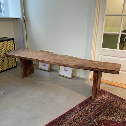 Lækker moderne bænk i lyst egetræ fra TAKT - næsten ikke brugt