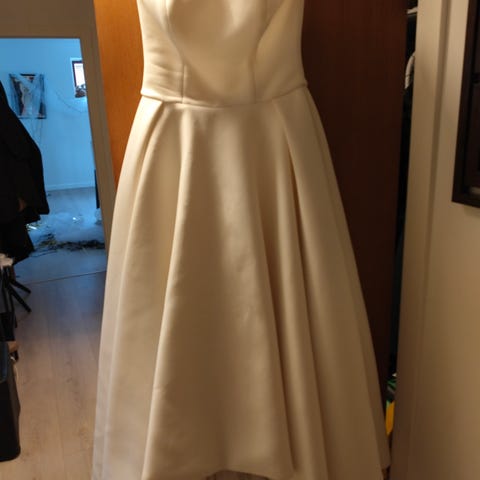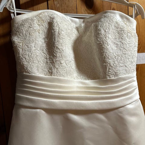 Smuk brudekjole med flot langt slæb,brugt kun én gang i perfekt stand størrelse S