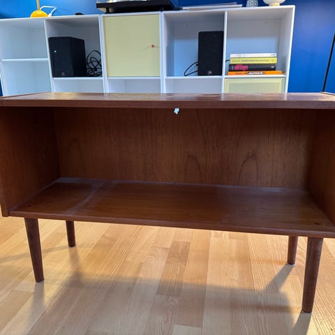 Perfekt til bøger, glas og opbevaring, og passer godt ind i en retro eller mid-century indretning.