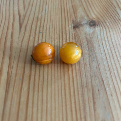 Flotte ældre rav øreringe med clips. Den ene er lidt løs i clipsen, men bør kunne strammes.