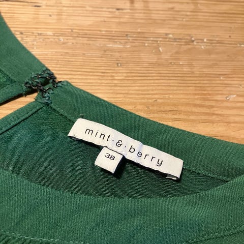 Vildt flot grøn asymestrisk kjole med stof draperet over den ene skulder - den anden skulder er fri. Lynlås i siden sikrer at kjolen sidder til, mens de rynkede syninger i siden gør at kjolen falder meget flatterende. Mærket er GDM - Grain de Malice, købt i Frankrig. 100 polyester, der hverken tager imod pletter eller krøller - super elegant og alligevel afslappet.