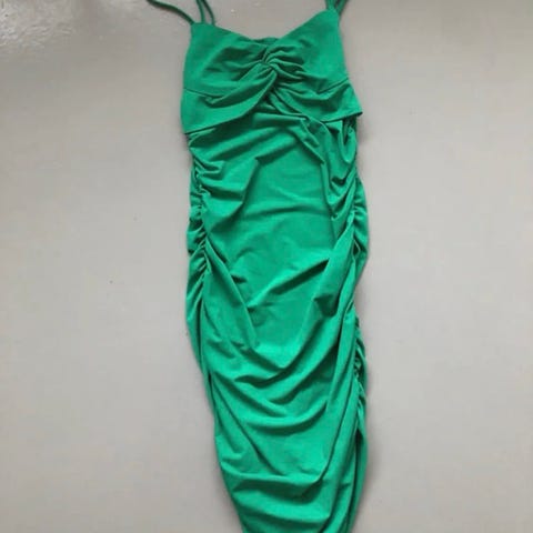 Knaldgrøn kjole m asymmetrisk drapering