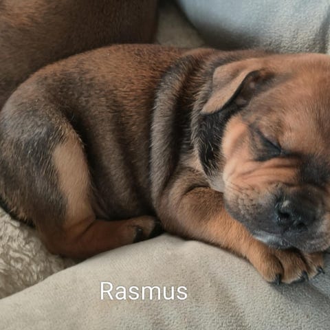 -Ca. 70% engelsk bulldog og 30% engelsk staffie – en skøn blanding af roligt og charmerende bulldog-temperament og legesyg staffie-energi