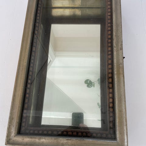 Sjovt gammelt spejlskab lavet af margarine kasser