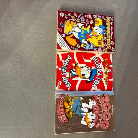 2 Anders And temabøger / kæmpejumbobøger, 2000 skøre år og Skattejagt. Sælges helst samlet, men muligt at give bud på enkelt.
