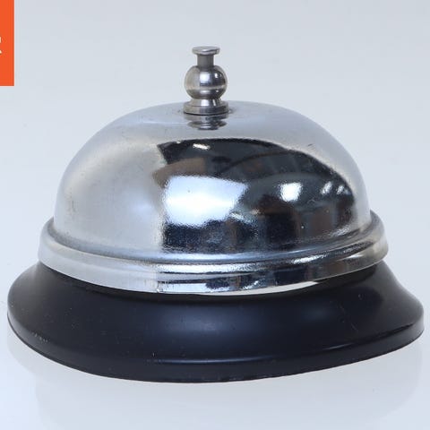 Stor klokke / bordklokke med den fineste ringen / ringelyd / klokkeslsg. Motiv af by - ukendt for mig. H 17,5 cm, dia 9 cm.
