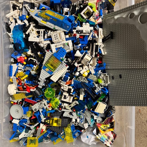 To bed-rollers fyldt med diverse LEGO (f.eks fly og rumraketter) og Bionucle modeller. Her er til mange timers leg. Alt er i fin stand.