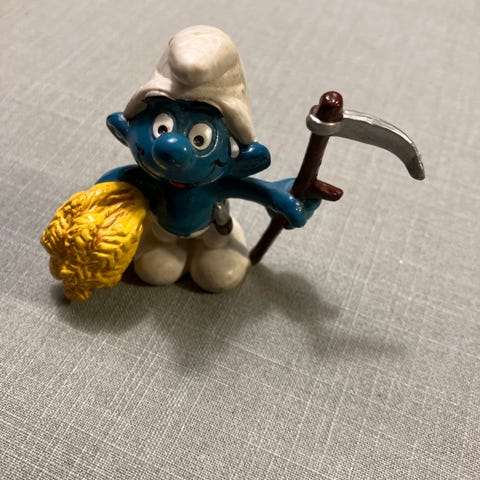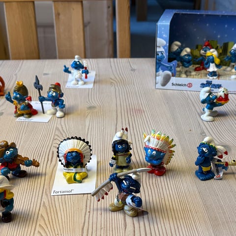Schleich Smølf Figurer Sæt i blå farve. Indeholder tre forskellige figurer, hver med unikke detaljer. Velegnet til samlere og som legetøj til børn.