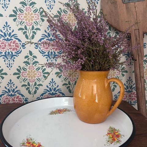 Rektangulært emalje fad, umiddelbart af lidt nyere dato, men stadig med den fine gamle patina.