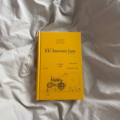 Selling this essential textbook for anyone studying or working with EU internet law. The book provides a comprehensive overview of legal frameworks governing the internet in the EU, including topics like data protection (GDPR), e-commerce, platform regulation, and digital services.