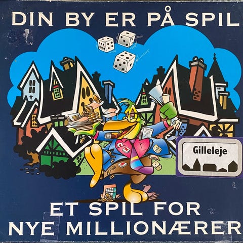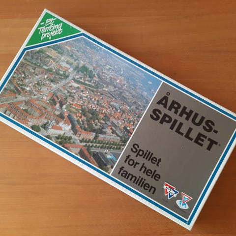 Århusspillet / (Region-Danmark; med Falck-biler), handelspil, matador-variant, selvpromovering, brætspil, Hermed familiespillet Århus-spillet / Aarhus-spillet fra Region-Danmark (eller hvem det nu er, som står bag...)