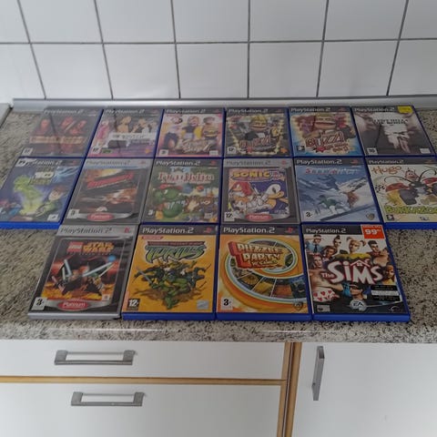 Playstation 2 spil samling med forskellige titler. Indeholder populære spil som 'Guitar Hero', 'Battlefield 2', 'Spider-Man', og 'SpongeBob'. Velegnet til fans af action, eventyr og strategi. Perfekt til både børn og voksne, der ønsker at opleve klassiske spil på PS2-platformen.