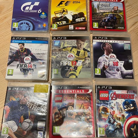 Playstation 3 spil samling indeholder forskellige populære titler, herunder "Gran Turismo 5", "FIFA 13", "Call of Duty: Black Ops II", og "Sly Cooper: Thieves in Time". Ideel til fans af racing, sport, action og eventyr. Spil til PS3 konsol, egnet til forskellige aldersgrupper.